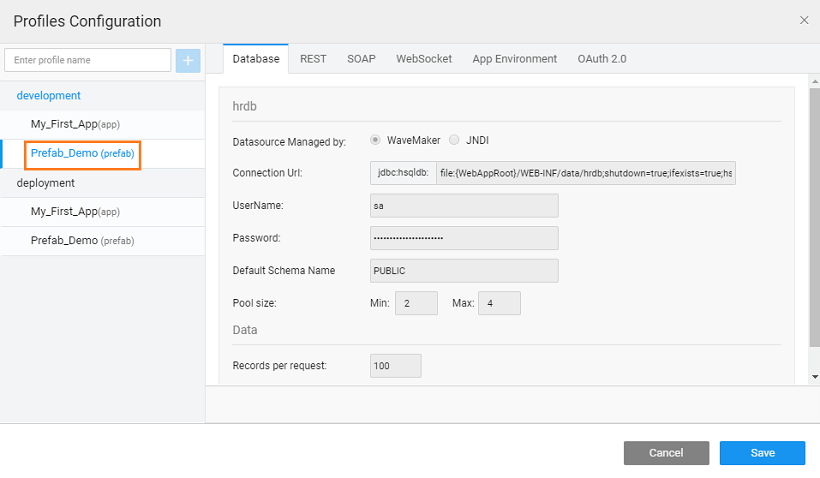 You can configure Database, REST Servers, and more. By default, two profiles are generated for every application.