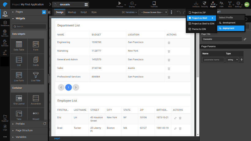 Instead of above steps you can instantly deploy to Amazon Web Service or to WaveMaker Demo Cloud with just a single click. Learn about one-click deployment.