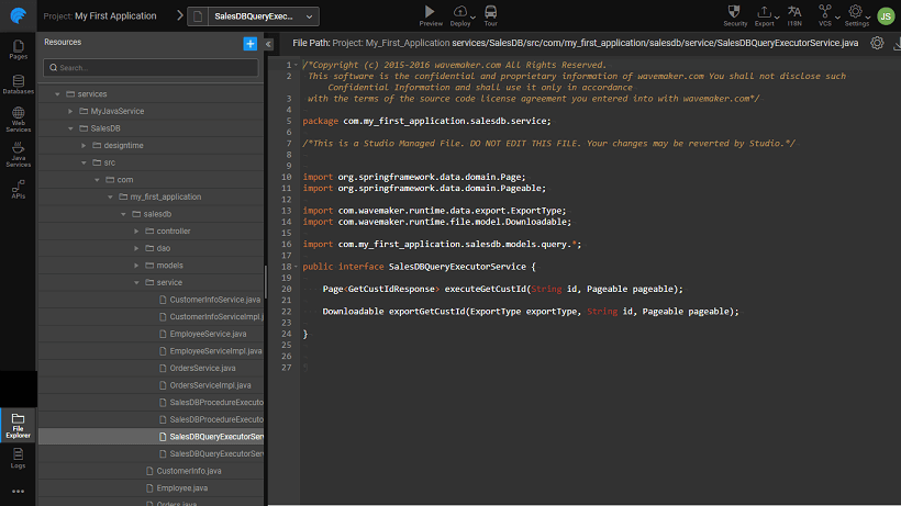 There will be times when you want to display data from multiple tables or update/insert values into multiple tables. Queries and Stored Procedures come in handy in such instances. WaveMaker provides editors for Queries & Procedures for integrating them with the WaveMaker applications. Each query & procedure used in the WaveMaker application will be exposed as a REST API for the UI to consume and render the data.
