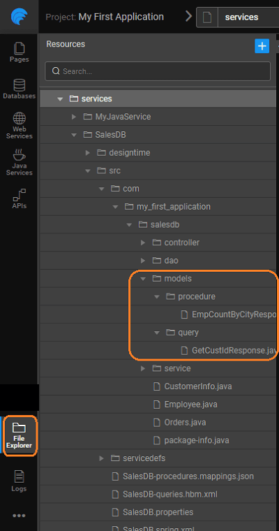For all queries and procedures, there will be a Rest API generated with the Service layer. Along with the API, depending on the query or procedure type, request and response POJO classes are generated.