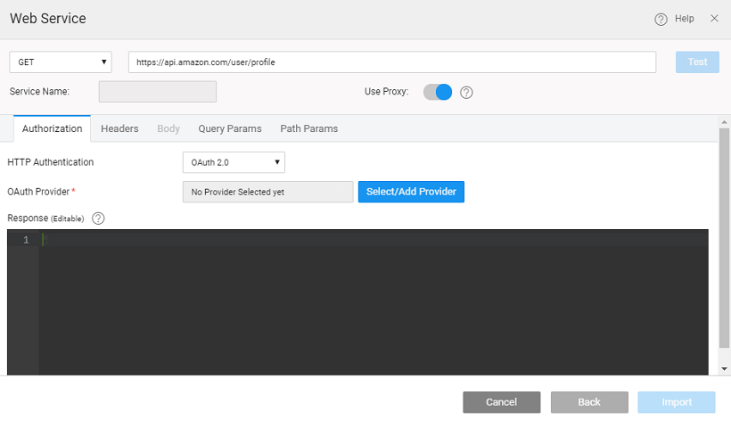 WaveMaker integrates the OAuth 2.0 configuration while importing a REST Service by: