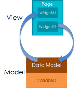 Once you have created the necessary variables (Variable Access), you can display the data or capture user input by binding data to a component/widget. The connection between a widget (or widget property) and a source of data is called the binding.
