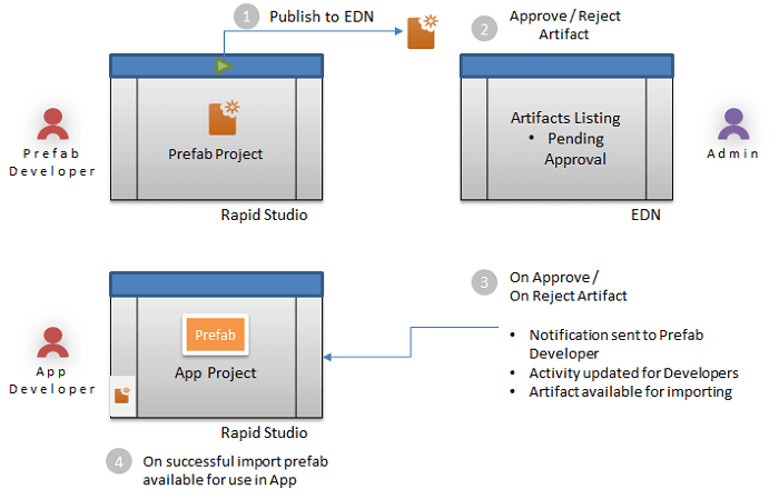 Prefabs can be imported from this dialog. Other Artifacts are available for use as soon as EDN Admin approves the Artifact.