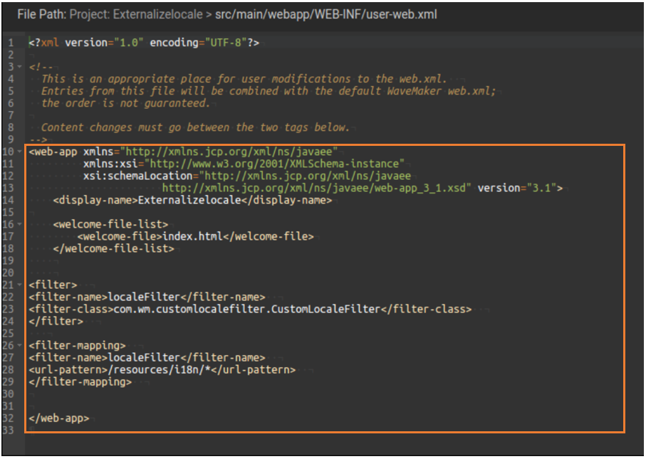 <filter-class>com.wm.customlocalefilter.CustomLocaleFilter</filter-class>