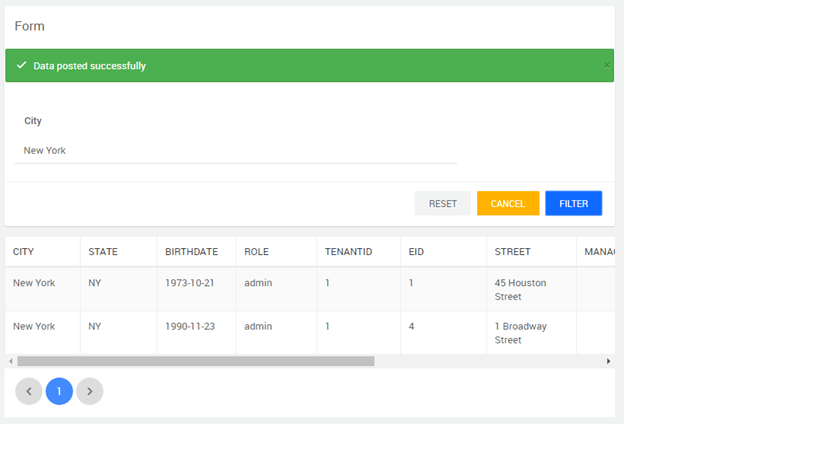 Using Form as Filter Form can be used as filter for GET type of API’s. Below example is for filtering the data using a query. We will be using the Employee table of hrdb database to filter on city field.