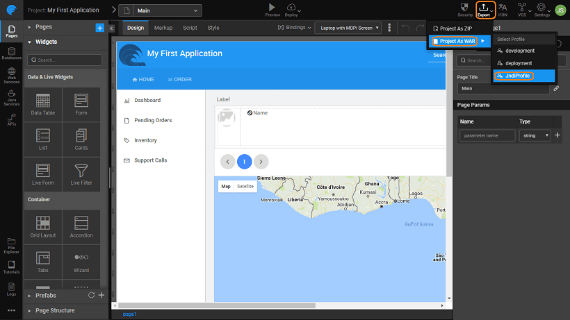 From WaveMaker Studio, for the app that you want to deploy to JBoss, Export the app as WAR file using the appropriate configurations. For more information, see Generate a WAR file.