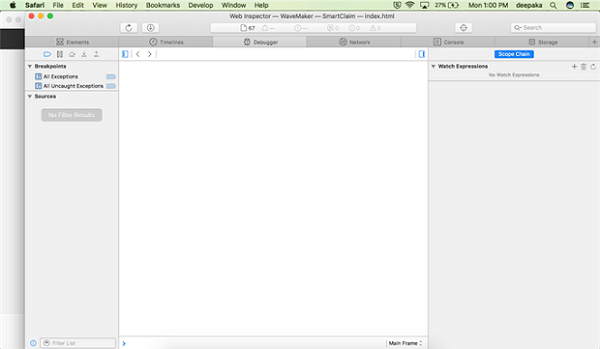 WaveMaker uses Cordova platform to build hybrid mobile apps. While Cordova handles the native JavaScript API binding, WaveMaker handles the core app logic and UI. A mobile app built using WaveMaker runs in a web view (equivalent to a web browser). How to debug the web view layer is explained below.