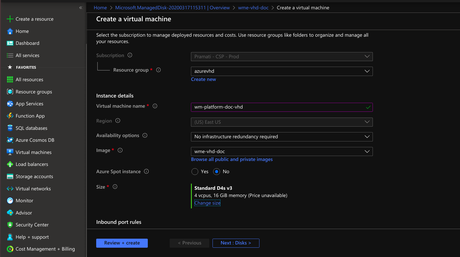 Creating Network Security Group for Platform Virtual Machine