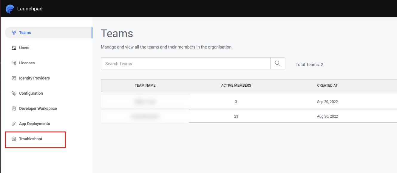1. Once you login to WaveMaker, open Launchpad and click Troubleshoot located on the bottom left as shown below.