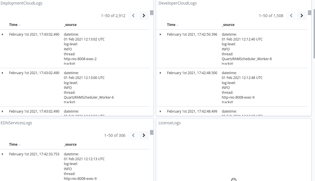 • Below screenshot displays logs of all the available microservices. Filter Icon