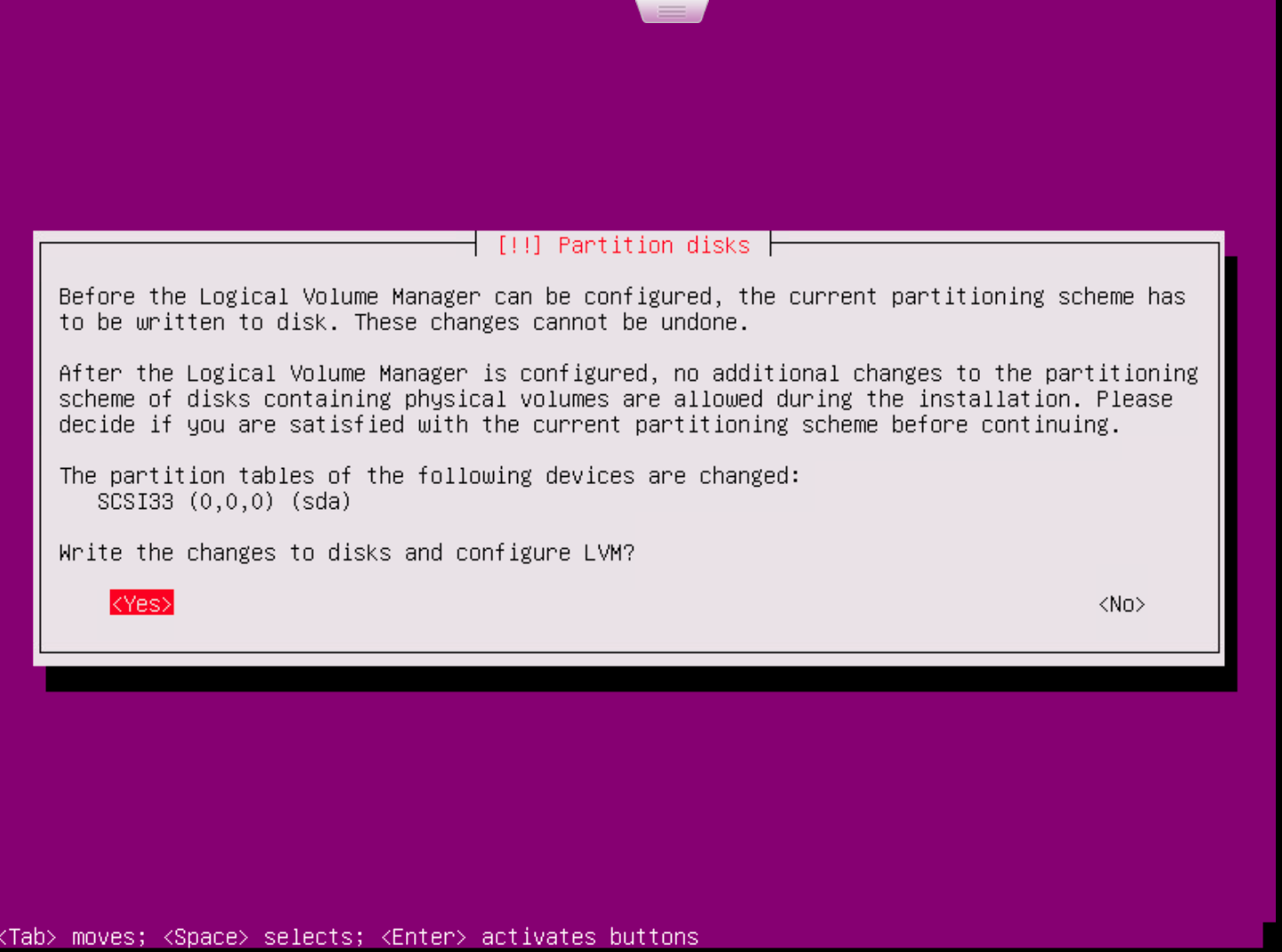 - Choose the option to write changes to disk and configure.