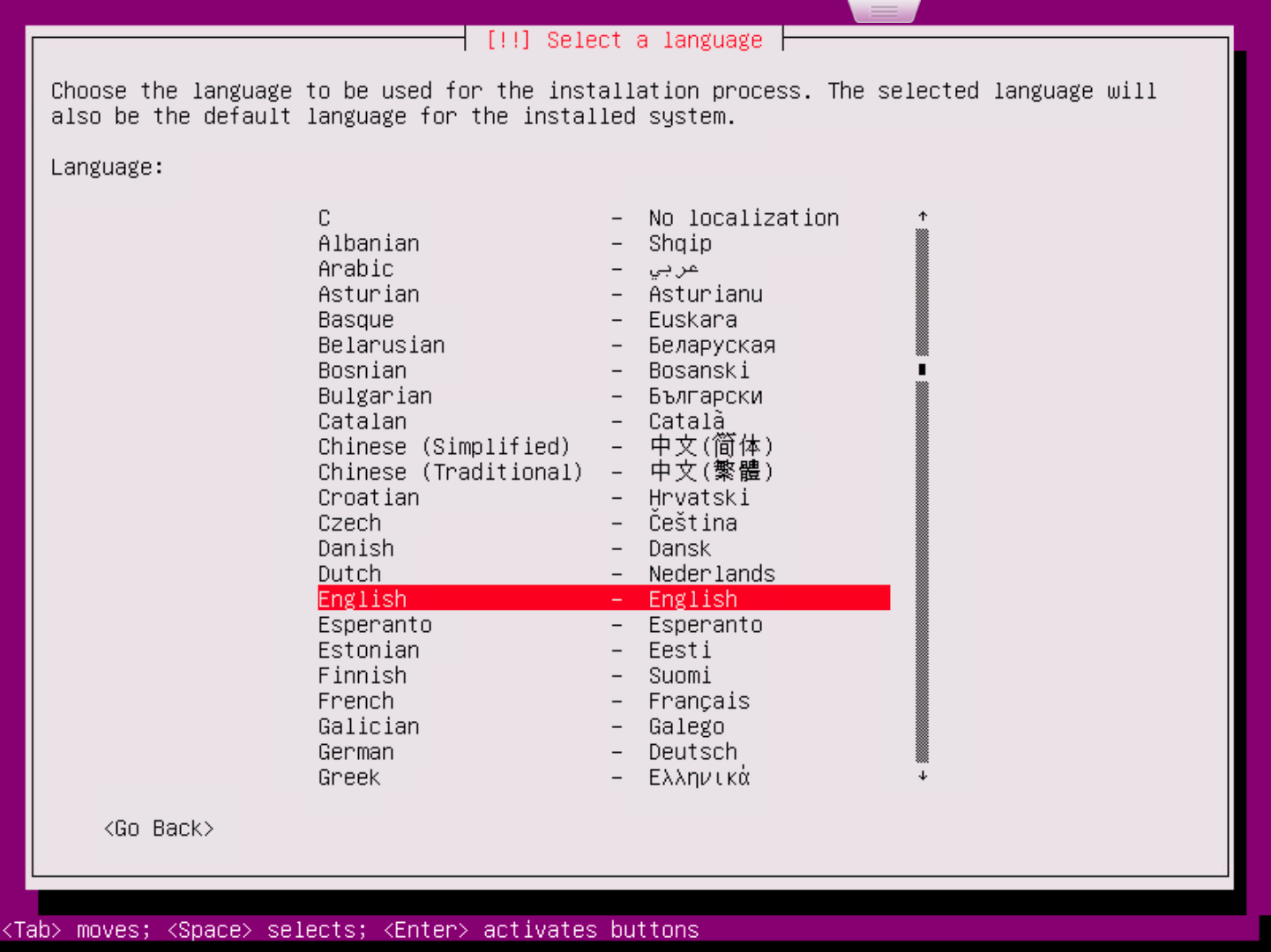 - Choose an option to install or not grub boot loader to the master boot record.