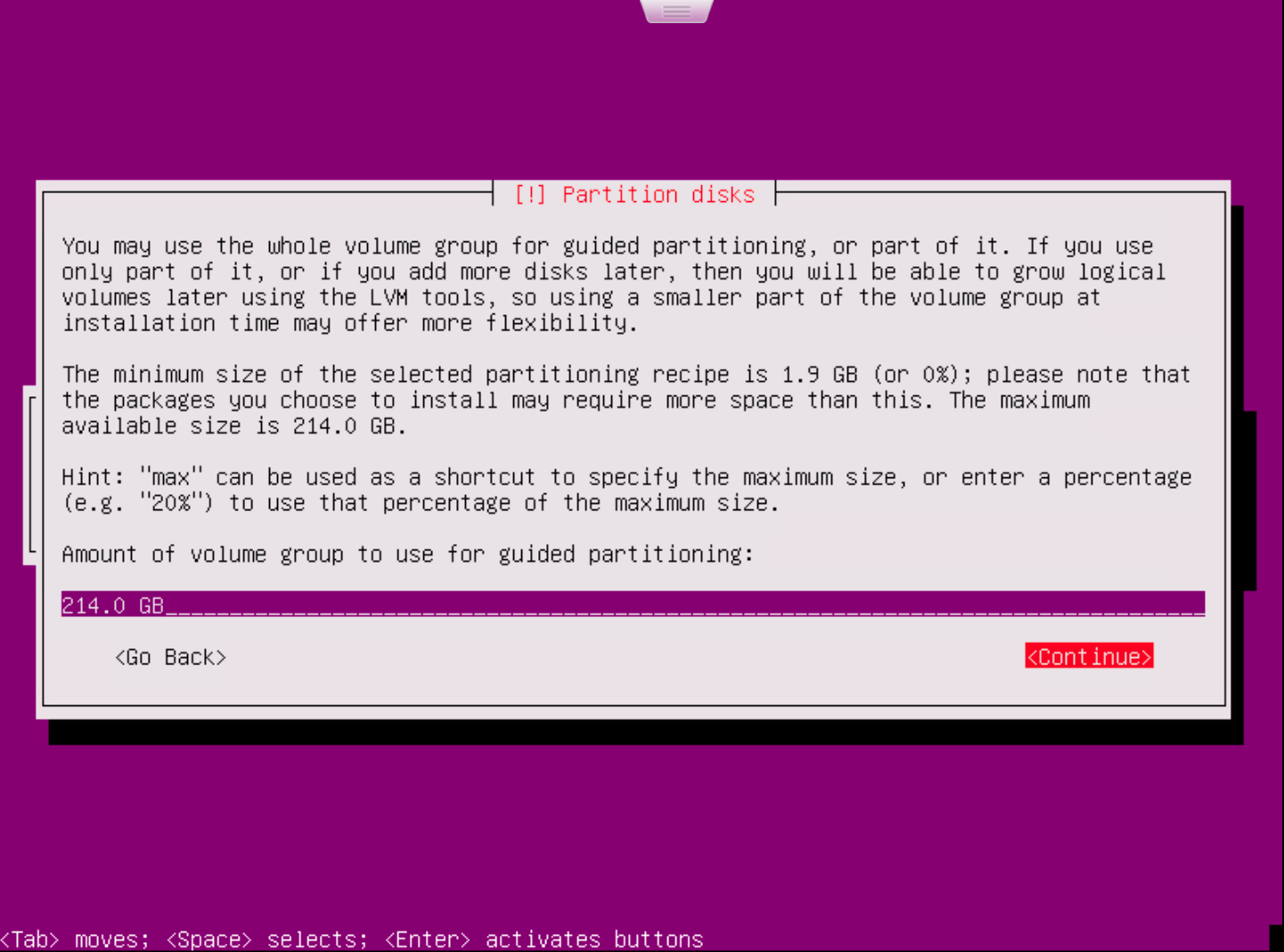 - Select the disk partition method.